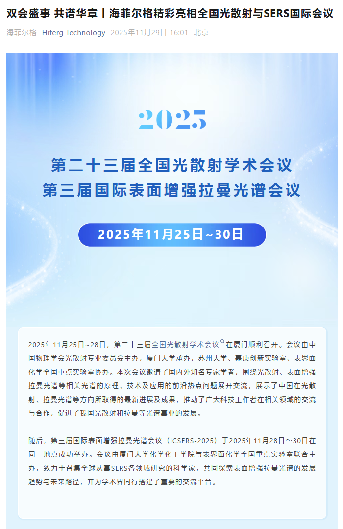 双会盛事 共谱华章丨海菲尔格精彩亮相全国光散射与SERS国际会议 admin 本站 点击下载 上一篇:微泡聚势 医健新程|海菲尔格亮相第二届全国微纳气泡大会 下一篇:双节同庆!海菲尔格与您共赏中秋美景、贺国庆华章!